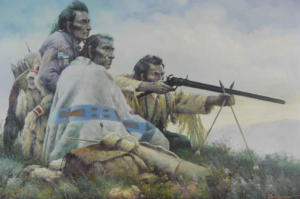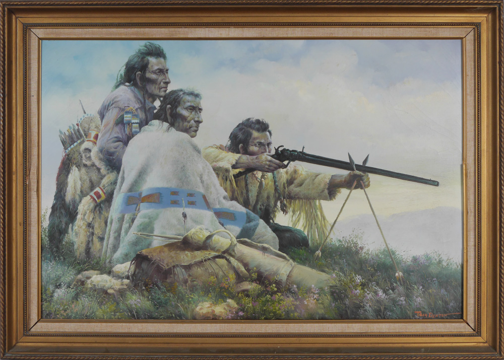 DENTON, Troy, (American, 1949- ): ''The Long Shot'' After a Painting by Howard Terpning, Oil/Canvas, sight size 24'' x 36'', signed lower right, framed, 30 1/4'' x 42 1/2''.