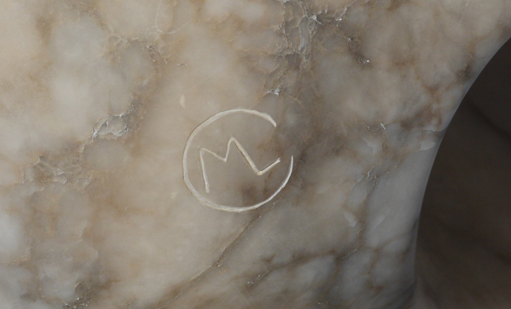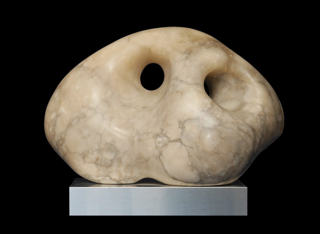 CITRON, Myrna Lieb, (American, 20th C): Abstract pierced and polished Alabaster Sculpture, 17''h. including the plinth, 22'' x 13'' approx. Weighs 106 lbs. for shipping purposes.