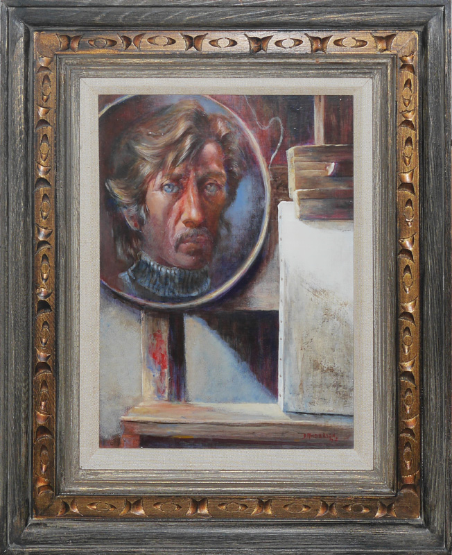 ANDERSON, David, (American, 1926-1996): Self Portrait in a Mirror, Oil/Board, sight size 15 1/2'' x 11 1/2'', signed lower right and dated '74, framed, 24'' x 20''.