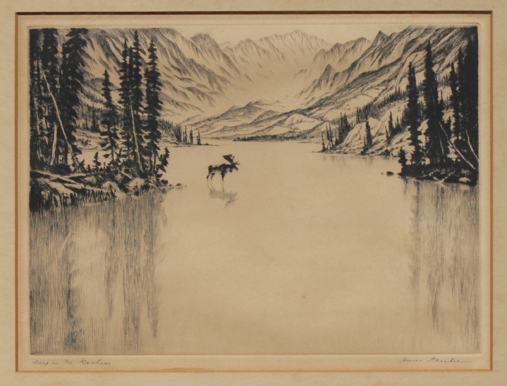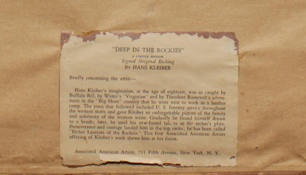 KLEIBER, Hans, (American, 1887-1967): ''Deep in the Rockies'', Etching, sight size 8 1/4'' x 11 1/2'', pencil signed lower right, titled lower left, framed, 14 3/4'' x 18 3/4'', AAA label affixed verso.