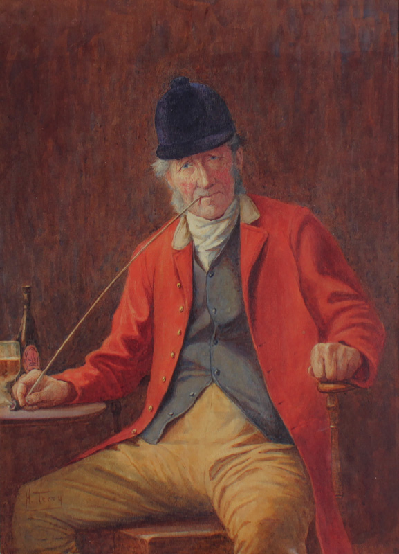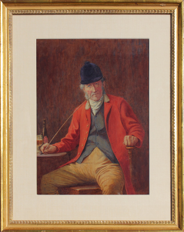 TERRY, Henry M., (British, 1879-1920): After the Fox Hunt, a Seated Elderly Gentleman Smoking a Pipe, Watercolor, sight size 14 1/2'' x 11'', signed lower left, fine framing, 23 3/4'' x 18''.
