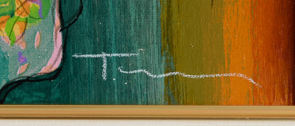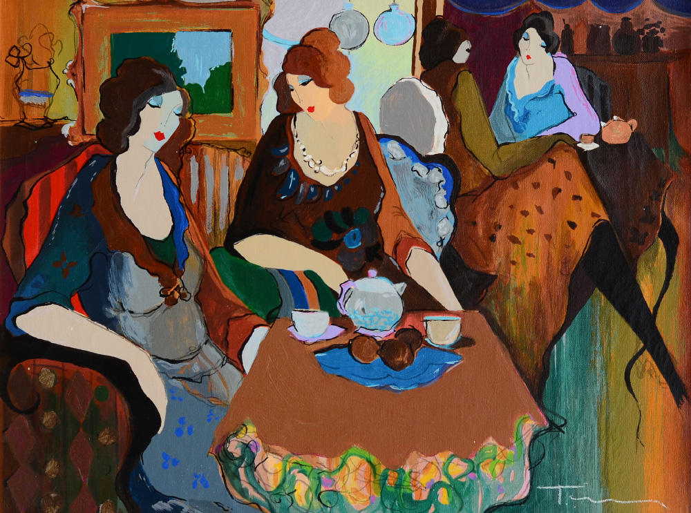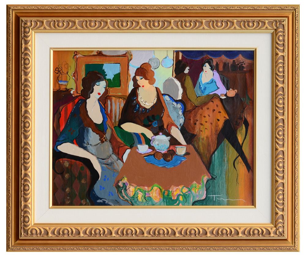 TARKAY, Itzchak, (Israeli, 1935- ): ''Casey for Tea'', Embellished Serigraph/Canvas, 16 1/4'' x 21 1/4'', signed lower right, original sale information affixed verso, encased in custom gilt frame, 25 1/2'' x 30 1/4''.