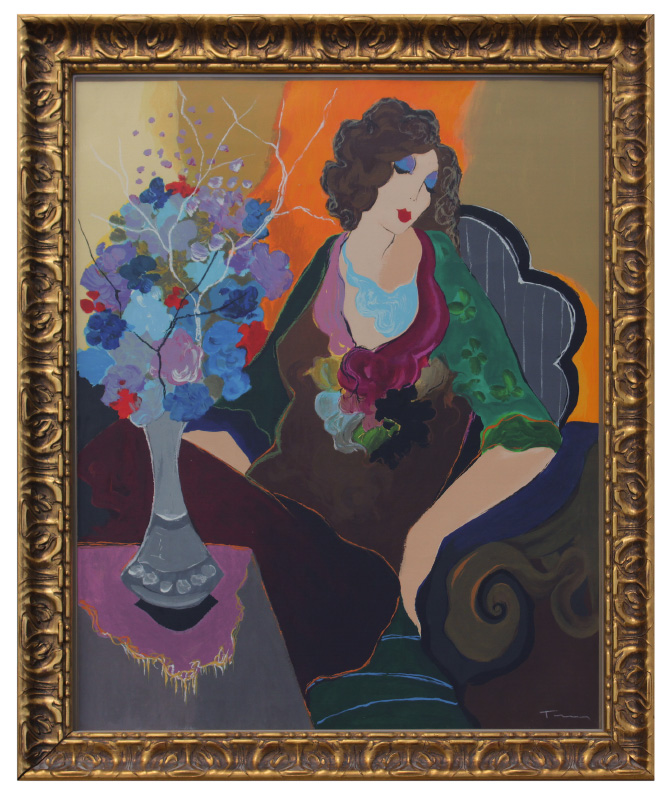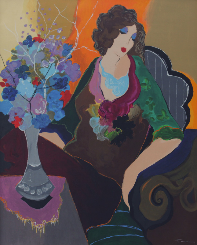 TARKAY, Itzchak, (Israeli, 1935- ): Seated Woman with Flowers, Serigraph, sight size 36'' x 29'', signed lower right, printer's proof, numbered 12 of 15, framed, 42'' x 34 1/2''.