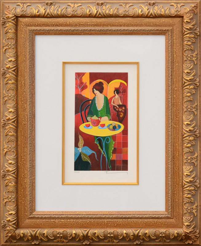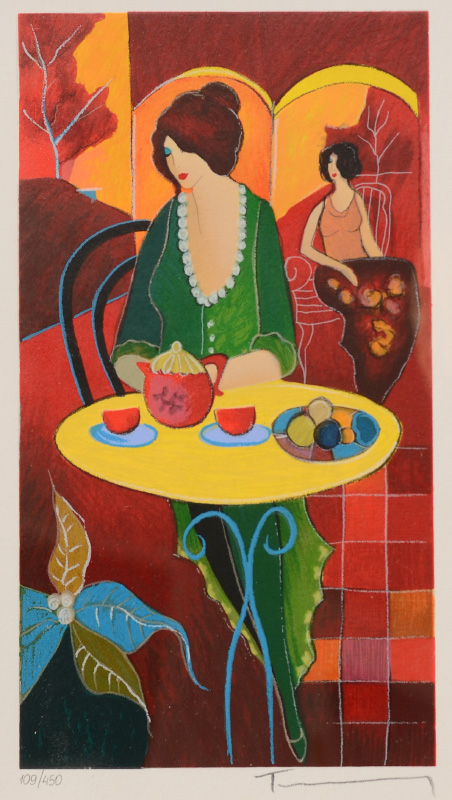 TARKAY, Itzchak, (Israeli, 1935- ): ''Charlena at Tea III'', Serigraph, sight size 11 1/4'' x 6 3/4'', pencil signed lower right, numbered 109 of 450 lower left, framed, 24'' x 19''.