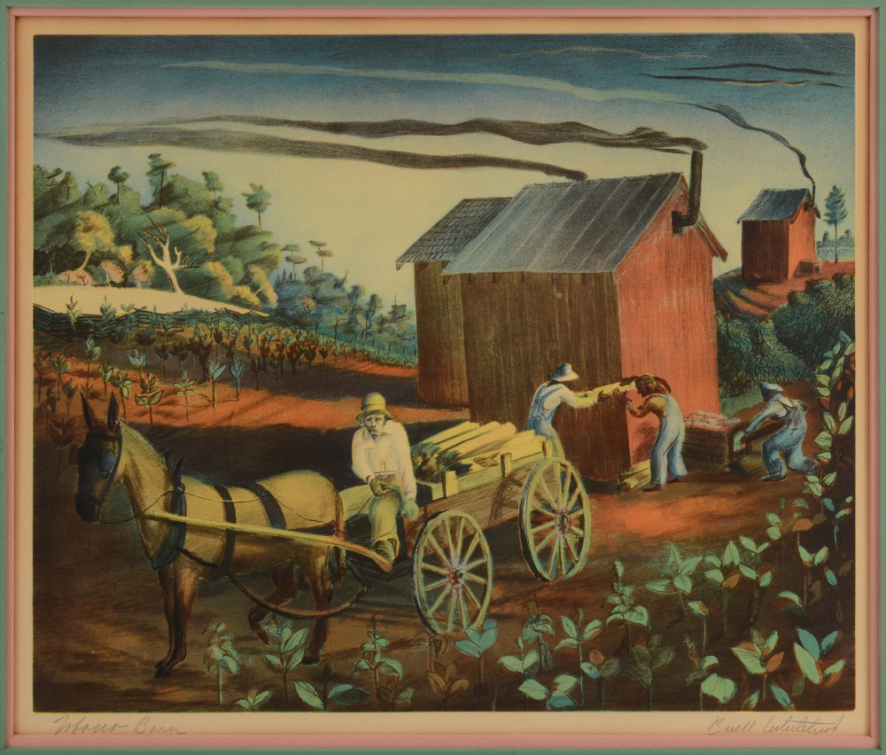 WHITEHEAD, Buell, (American, 1919-1993): ''Tobacco Barn'', Color Lithograph, sight size 14 1/2'' x 17 1/2'', pencil signed lower right, titled lower left, contemporary frame, 26 3/4'' x 28 3/4''.