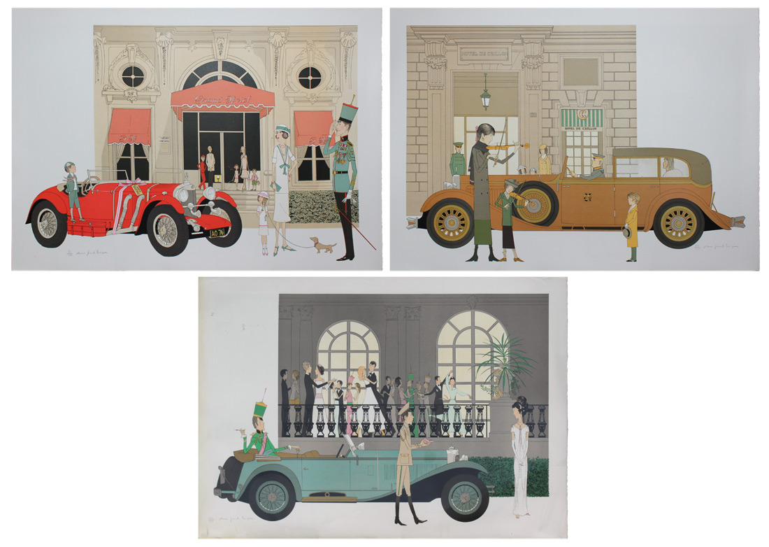 NOYER, Denis Paul, (French, 1940- ): 3 Lithographs to include: 1) ''Ballroom Dancing'', 29 1/2'' x 41'', signed lower left and numbered 143 of 250, unframed; 2) ''Grand Hotel'', 29 1/2'' x 41'', numbered 61 of 250, unframed; 3) ''Hotel de Crillon, 29 1/2'' x 41'', numbered 122 of 250, unframed.