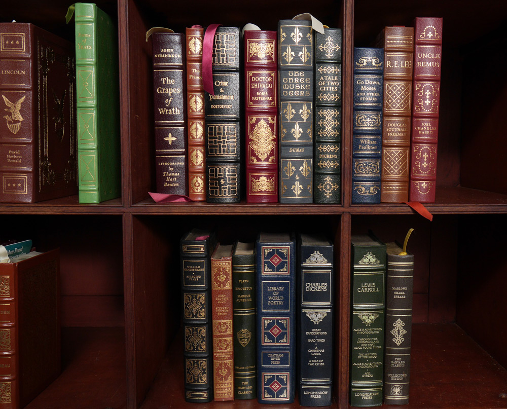 COLLECTION OF 44 CONTEMPORARY LEATHER BOUND BOOKS: An assembled collection of classics, mostly Easton Press with various other publishers to include Southern Classics Library, Harvard Press and more.