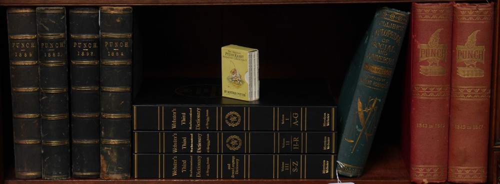 COLLECTION OF ANTIQUARIAN & VINTAGE BOOKS: An assembled collection of various time era and subjects, highlights to include 6 volumes ''Punch or the London Charivari''; bound St. Nicholas magazines 1890-1891; ''Colliers Cyclopedia of Commercial & Social Information'' 1883; Edward Baines ''History of the Wars of the French Revolution'' 1817 and many more.