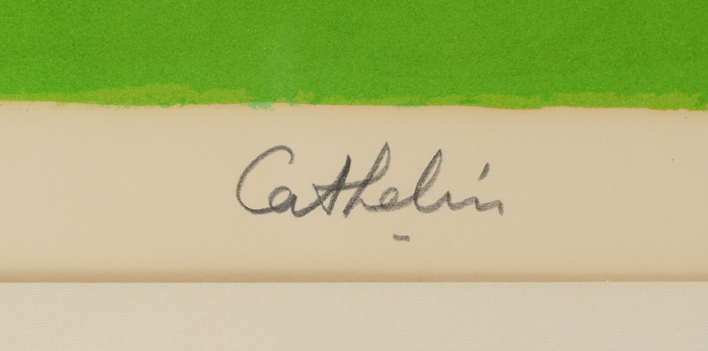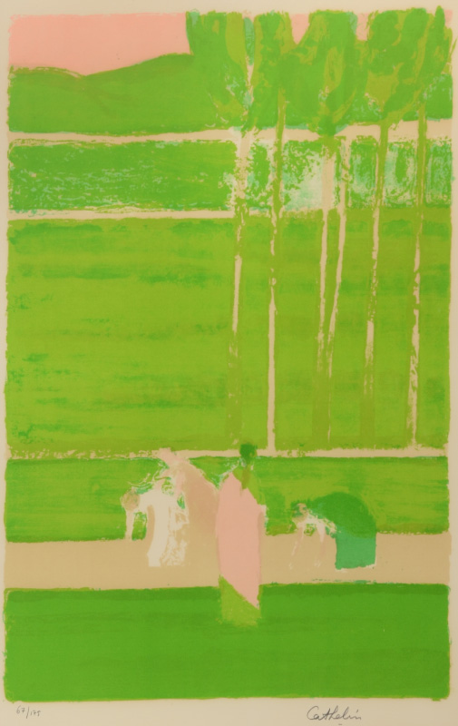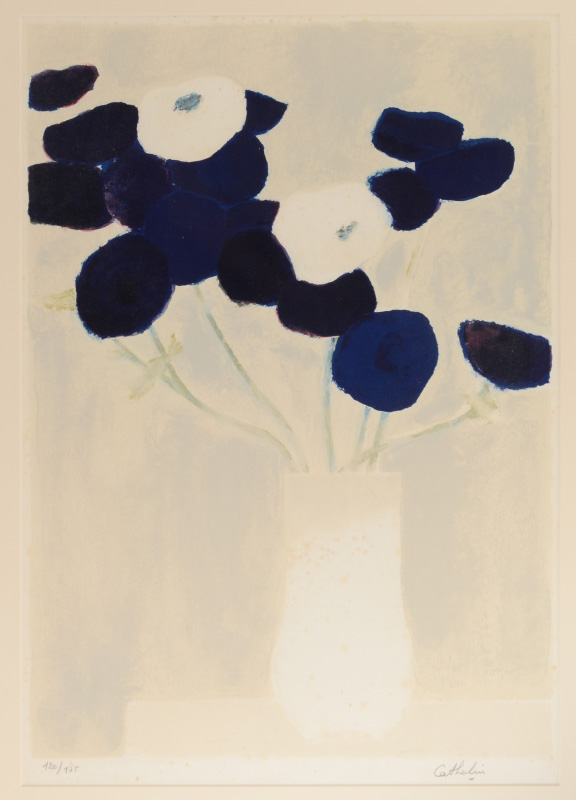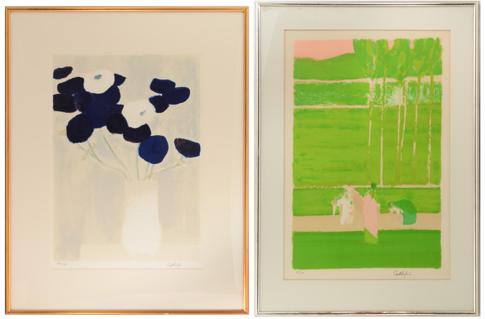 CATHELIN, Bernard, (French, 1919-2004): 2 Lithograph lot includes 1) Women Picking Flowers in a Landscape, sight size 30 1/2'' x 20 1/4'', pencil signed lower right and numbered 67 of 175, silver gilt frame, 39 1/2'' x 27 1/2''; 2) Floral Still Life, sight size 25 1/2'' x 17 3/4'', pencil signed lower right, numbered 120 of 175 lower left, framed, 37'' x 29''.