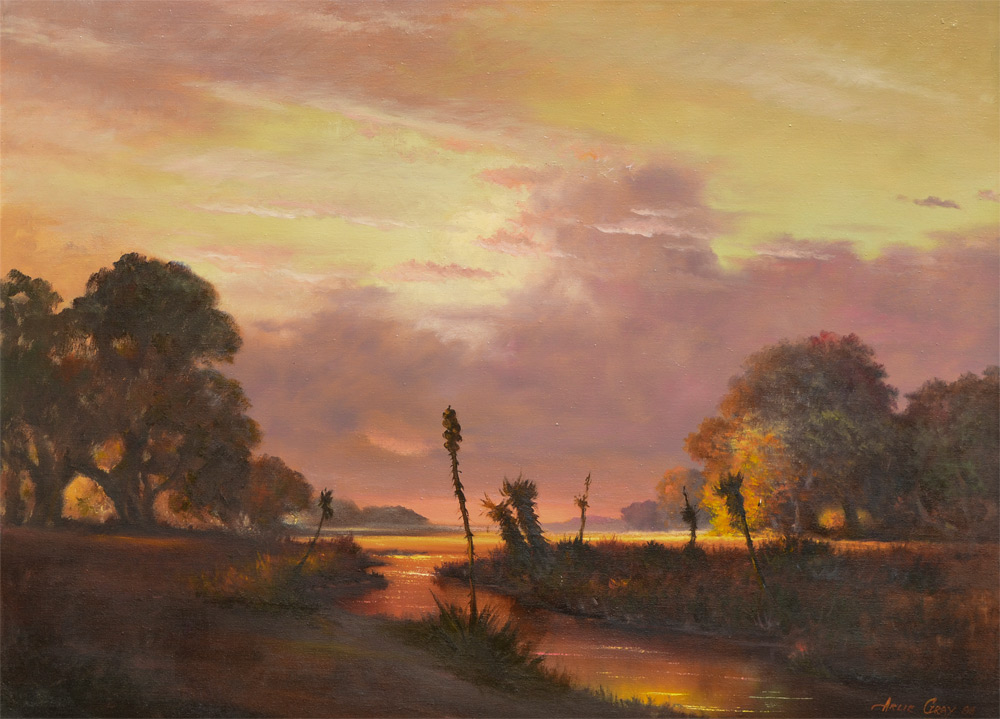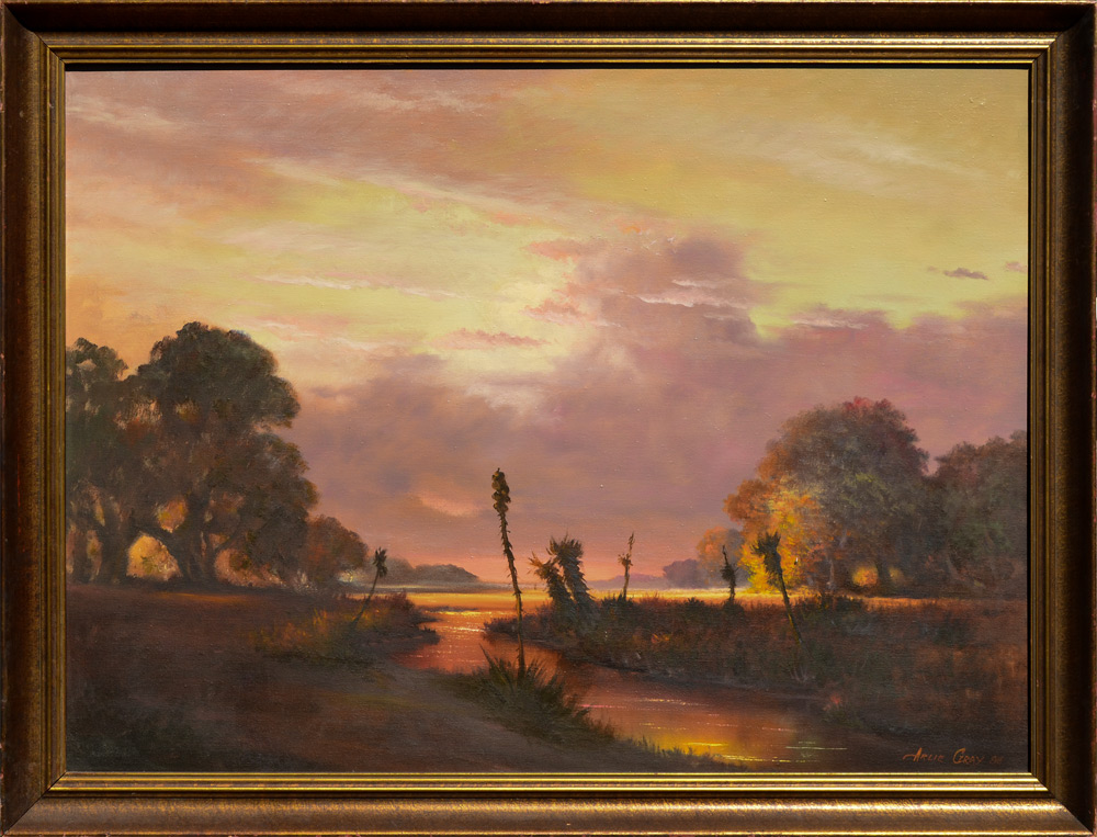 GRAY, Arlie, (American, 20th Century): Florida backwaters landscape at sunset, Oil/Canvas, signed and dated '88, 28'' x 38'', framed 32 3/4'' x 42 1/2''.