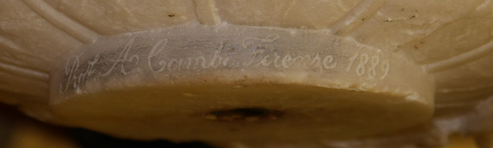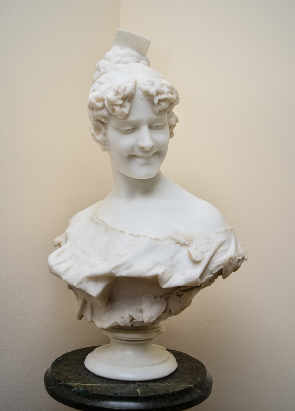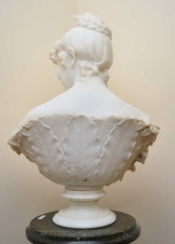 PROFESSOR A. CAMBI MARBLE BUST OF A YOUNG BEAUTY: Heavy carved marble bust, 23'' h., incised Prof A. Cambi Firenze, 1889, beveled plinth included.
