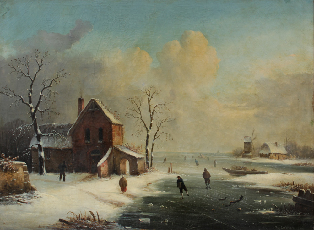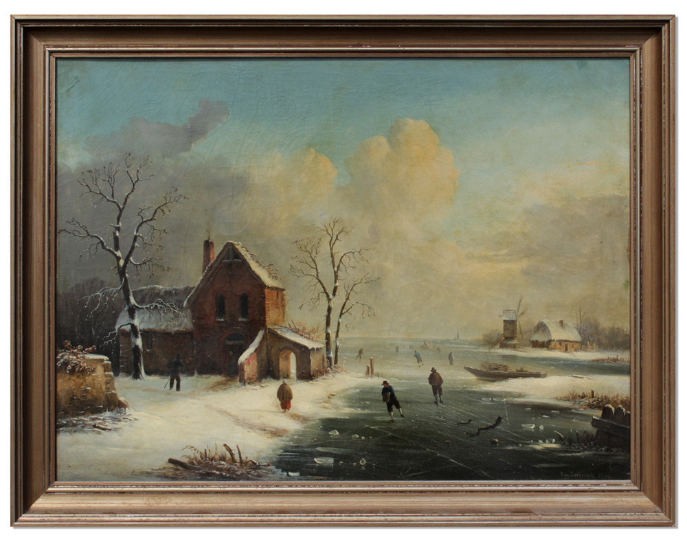 VAN ZEEBROCK, (Dutch, 19th Century): Dutch Winter Ice Skating Scene, Oil/Canvas, 21 1/4'' x 28 3/4'', signed lower right and dated 1844, framed, 24 1/2'' x 32''.