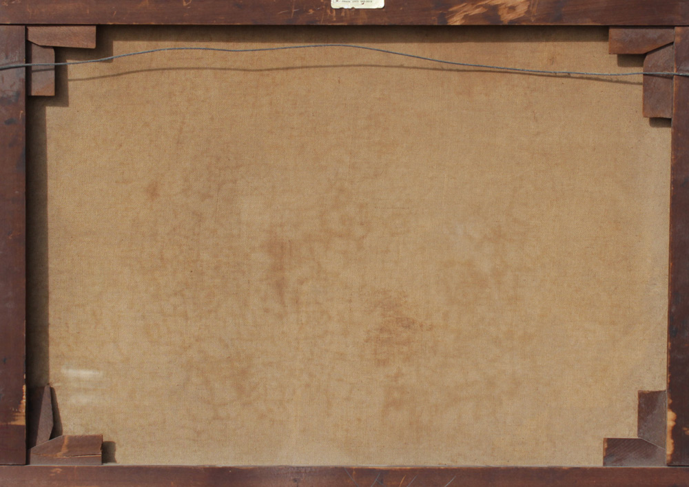 CONDITION: Scattered craquelure, inpaint, needs cleaning, older reline, sold as is.