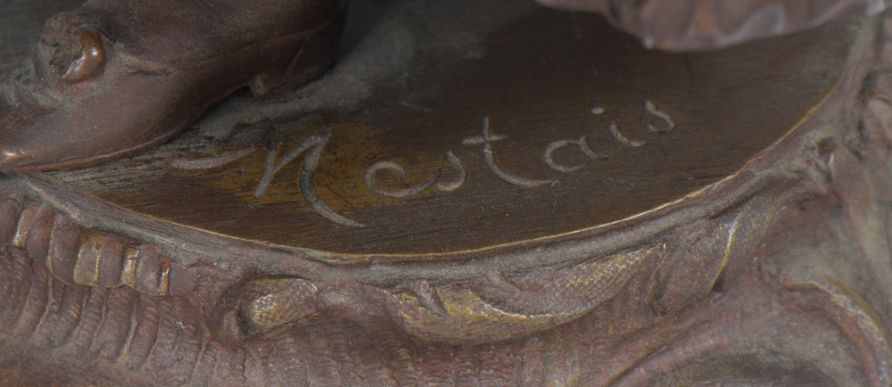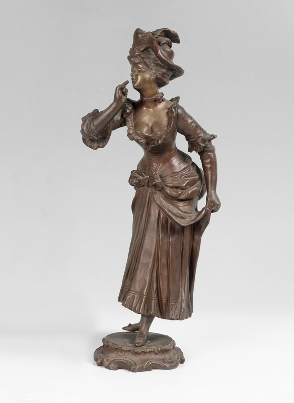 VICTORIAN BRONZE FLIRTATIOUS YOUNG GIRL: Signed on the base Mestais?, 16 1/2'' h.