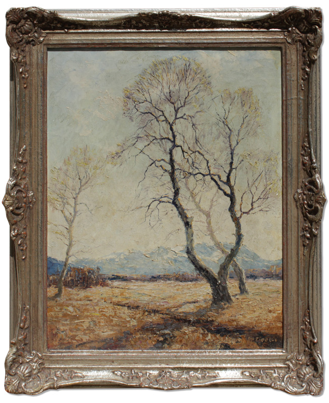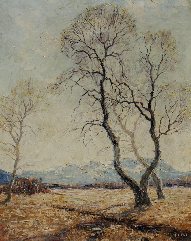 PIPPEL, Otto, (German, 1878-1960): German Landscape in Winter, Oil/Canvas, 24'' x 19'', signed lower right, inscription verso in German, silver gilt frame, 29 1/2'' x 24 1/2''.