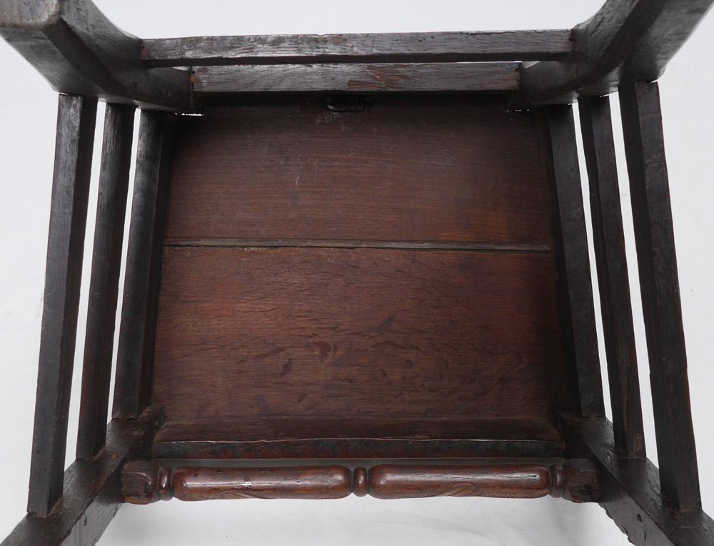 CONDITION: Split to seat, looseness to joints, other wear consistent with age and use.