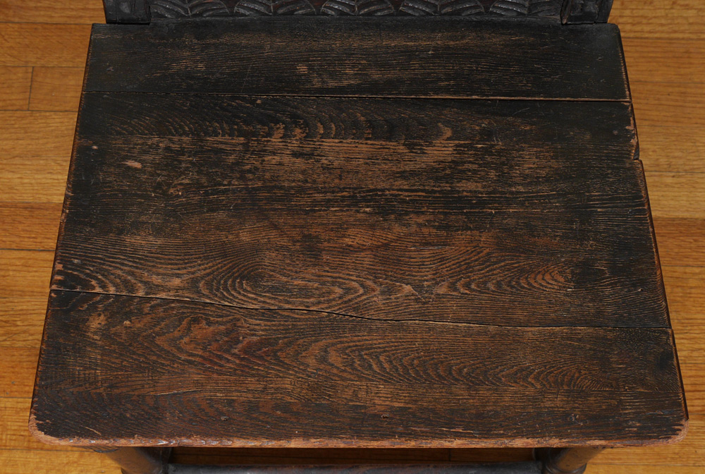 CONDITION: Splits to seat, looseness, other wear consistent with age and use.
