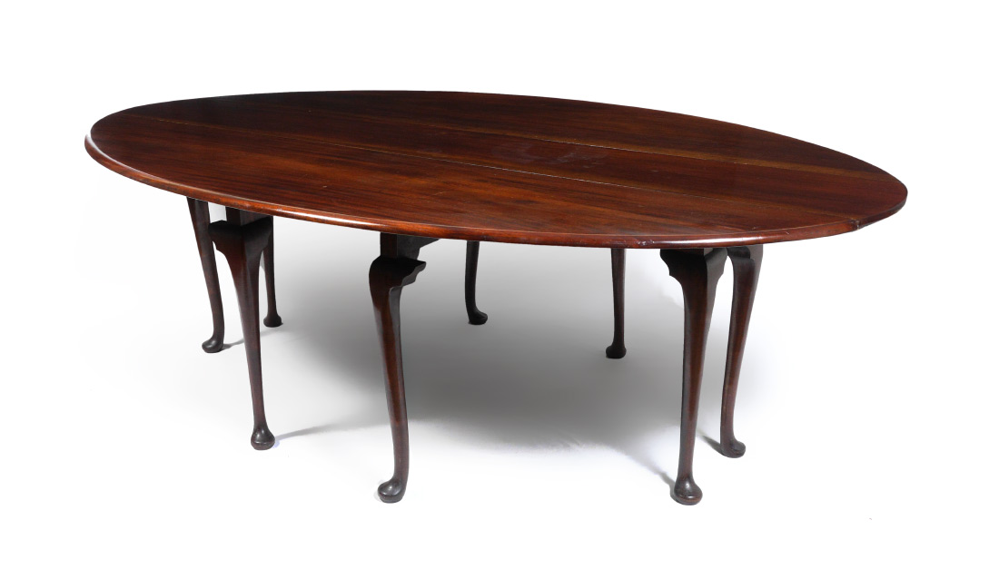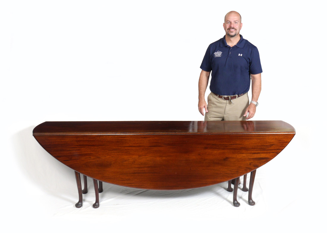 SLENDER DROP LEAF IRISH WAKE TABLE: Early 20th century double drop leaf with gate legs ending in pad feet, overall measures 29 1/2'' h. x 94'' x 15 1/2'' with leaves down. Each leaf 21 1/4''.