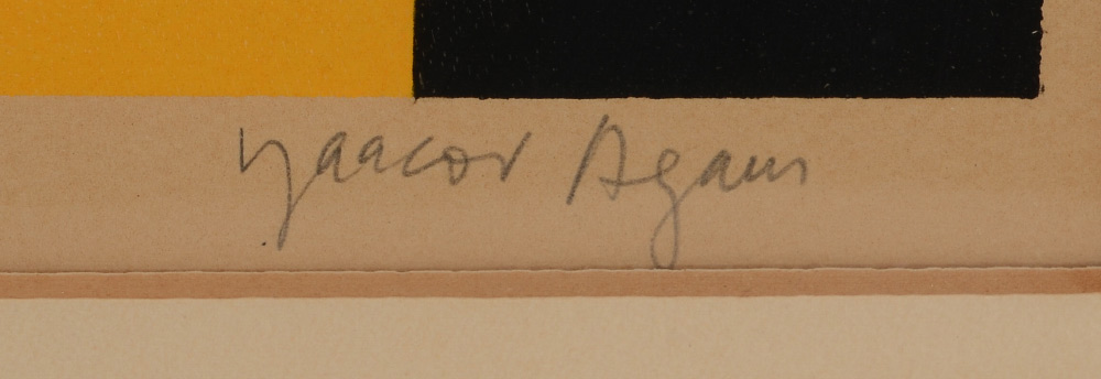 EARLY YAACOV AGAM SCREENPRINT: Geometric Composition, sight size 19'' x 23 1/4'', pencil signed lower right, numbered lower left EA, framed, 26 1/4'' x 30''.