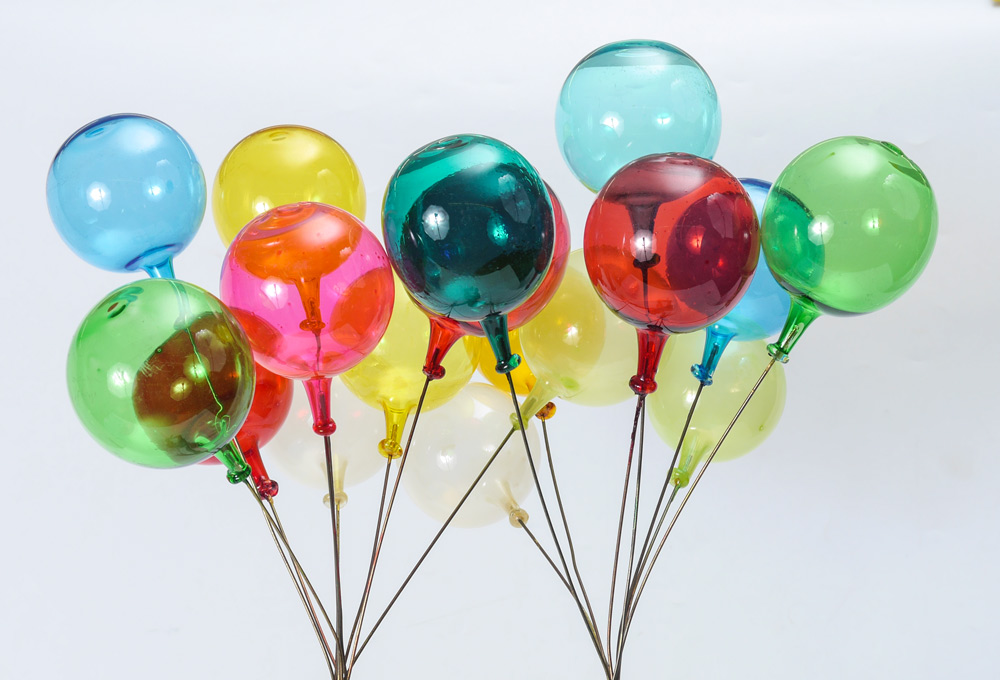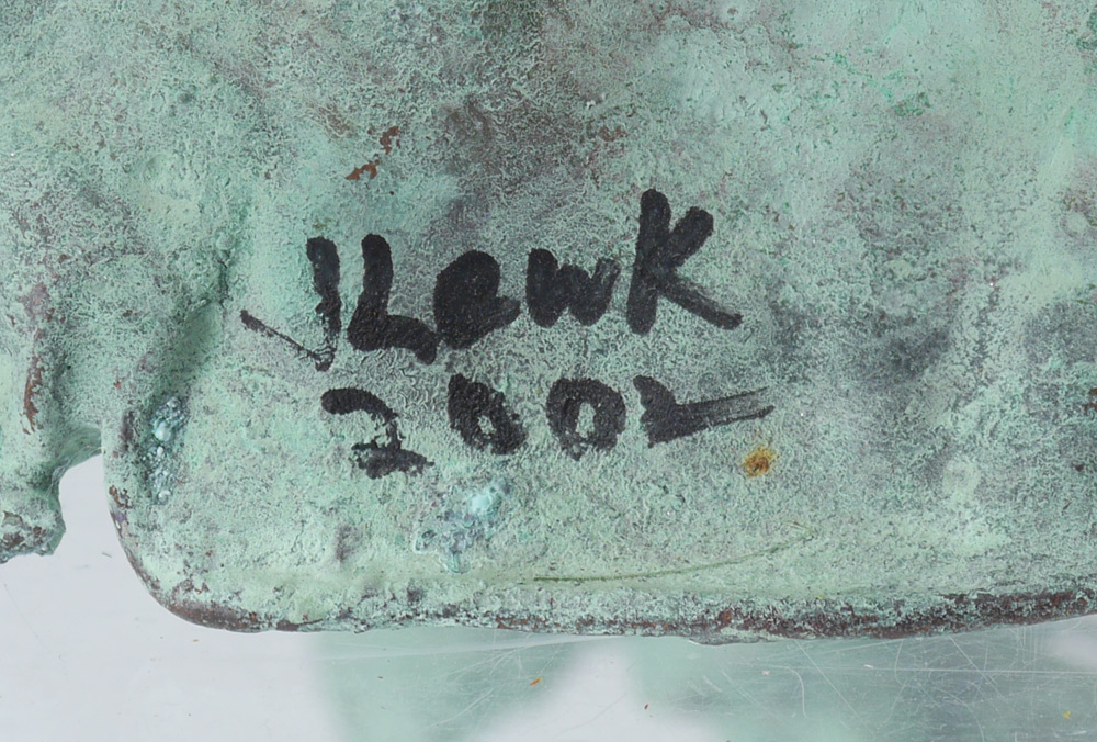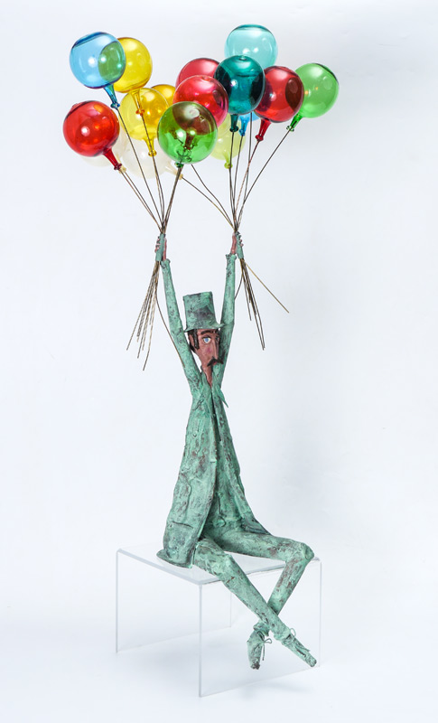 LEWK, Jim, (French, 20th Century): Copper Balloon Man sculpture with hand blown glass balloons, signed J. Lewk, 2002. Approx. 32''h