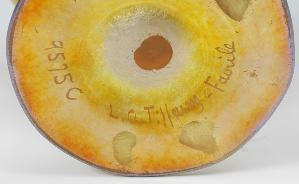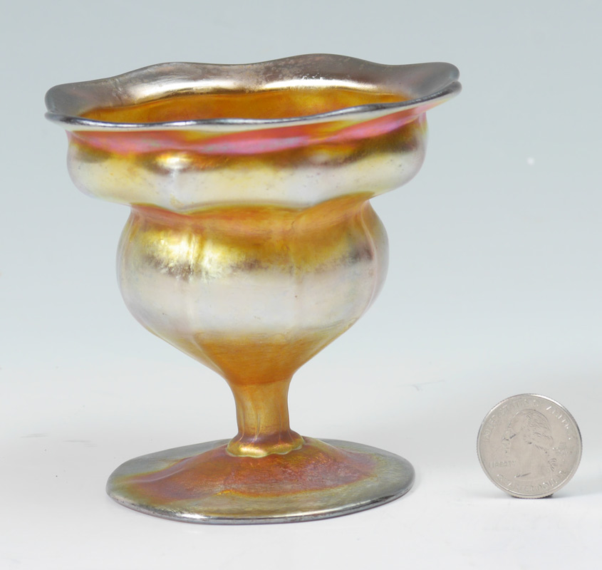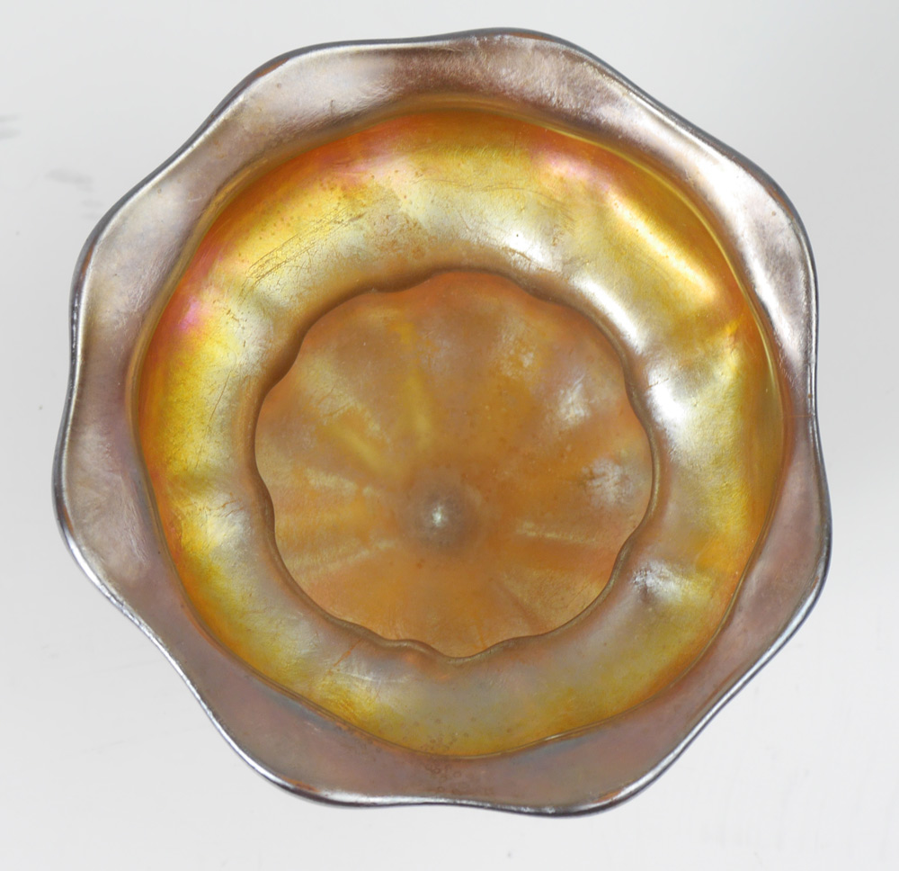 TIFFANY FAVRILE ART GLASS RIB OPTIC FRUIT/FLOWER STAND: Signed 9575C L.C. Tiffany - Favrile, 3.75''h x 3 7/8'' dia.