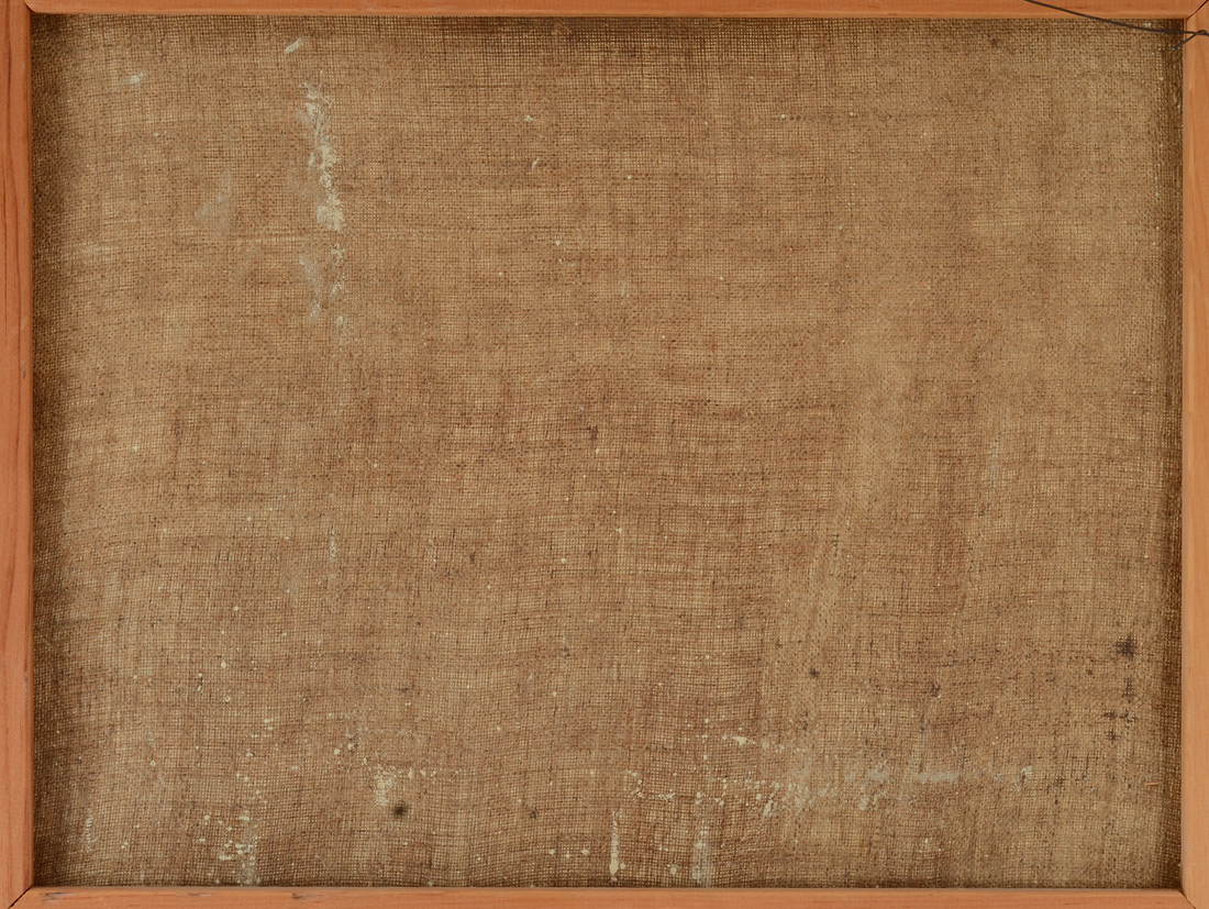 CONDITION: Needs cleaning and restretching, several minor flecks of loss.