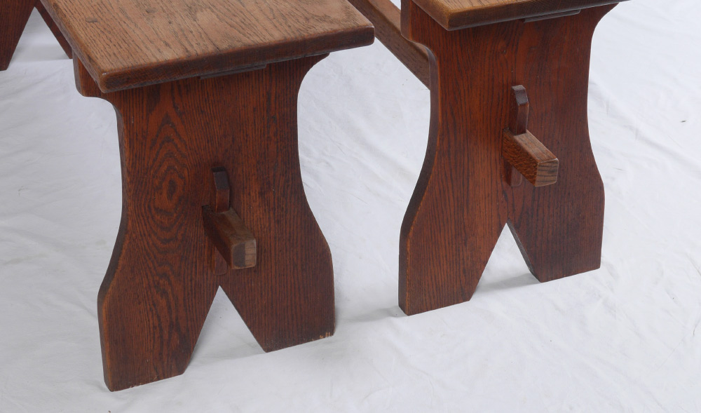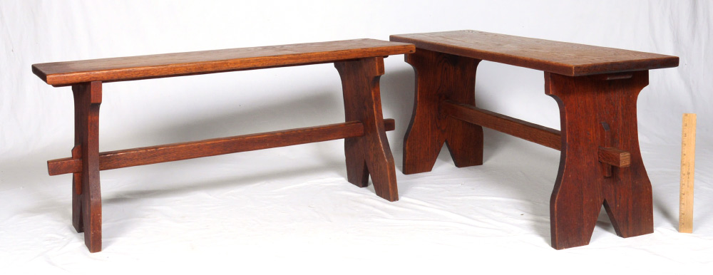 PAIR OF OAK BENCHES: Peg & through tenon construction, 18'' h. x 40'' x 12''