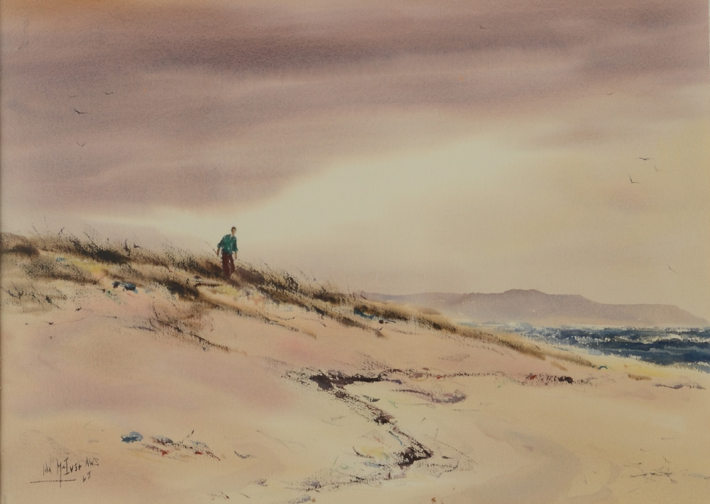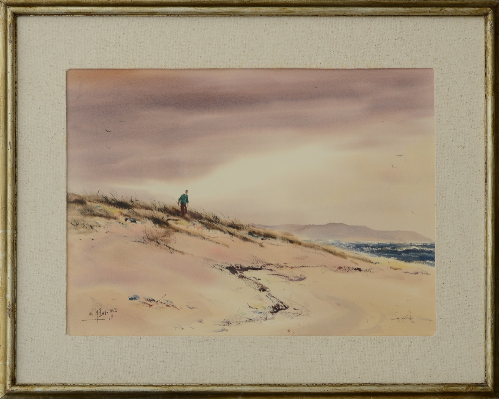 MCIVER, John, (American, 1931-): Matanzas Beach, Watercolor, sight size 21'' x 29'', signed John McIver AWS, dated '69, framed, 32'' x 39''.
