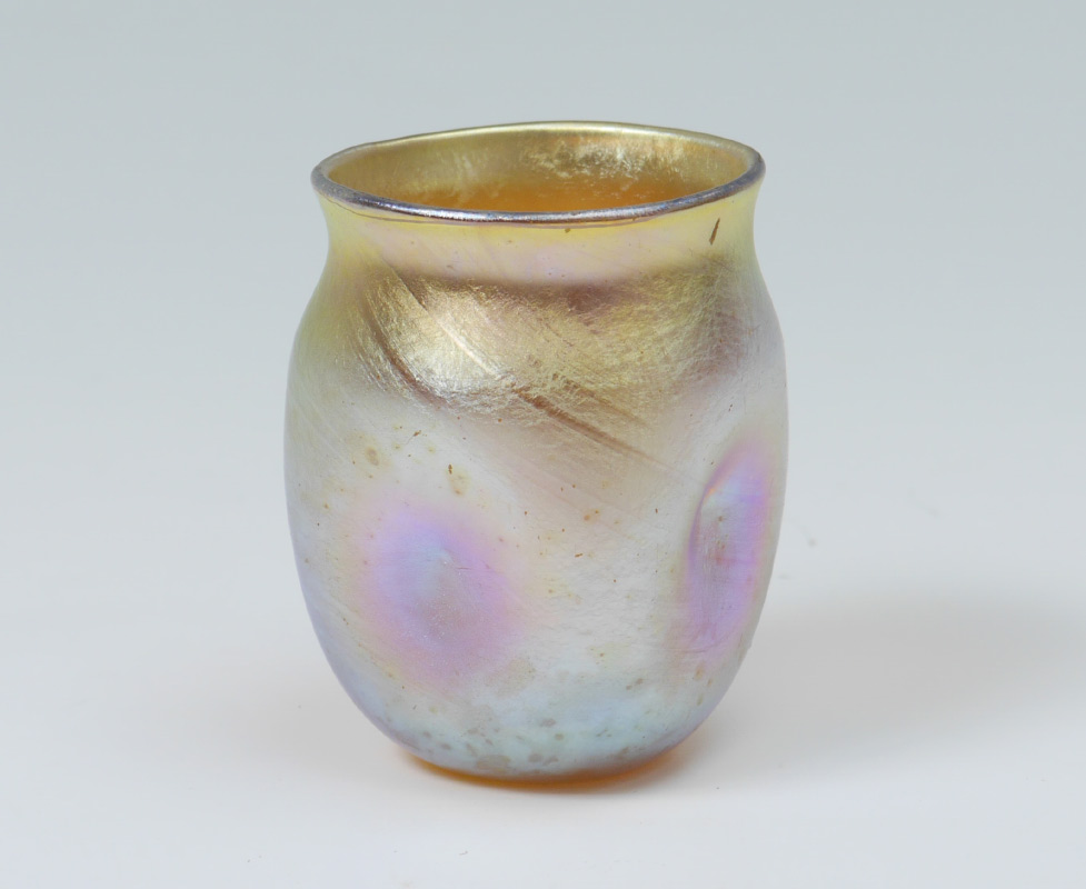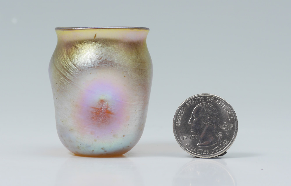 TIFFANY FAVRILE ART GLASS TOOTHPICK HOLDER: Dimpled body, signed L.C.T. V2526, 1 7/8''h.