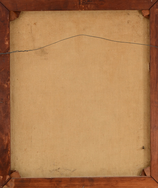 CONDITION: Puncture in left margin, stretcher bar wear, needs cleaning, sold as is.