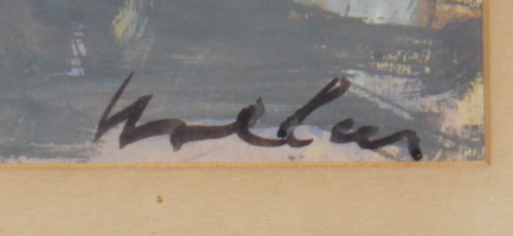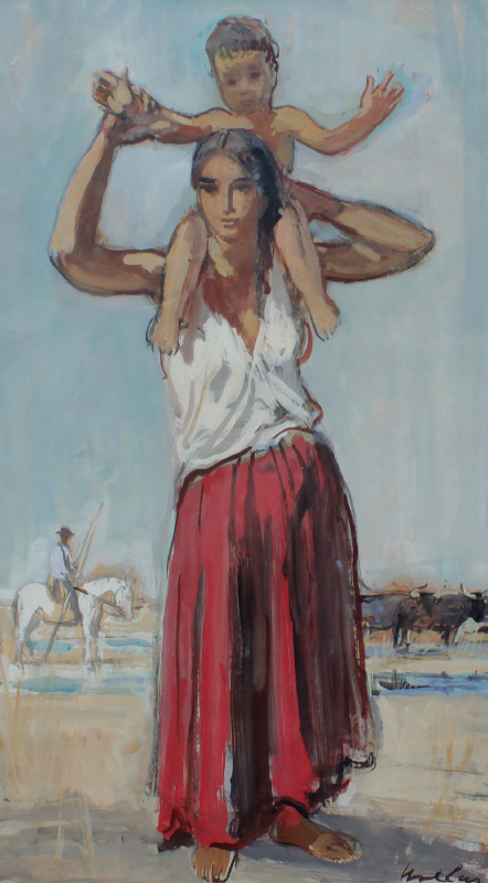 UZELAC, Milivoy, (Yugoslavian, 1897-1950): Mother & Child in Cattle thick landscape, Gouache, sight size 24 1/2'' x 14 1/4'', framed, 29 1/2'' x 18 1/2''.