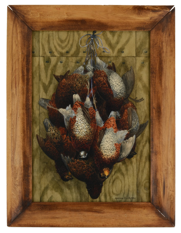 ADDISON E. AVERY DEAD GAME FOWL PAINTING: Watercolor, sight size 21'' x 14 1/2'', signed lower right, framed, 27'' x 20 1/2''.