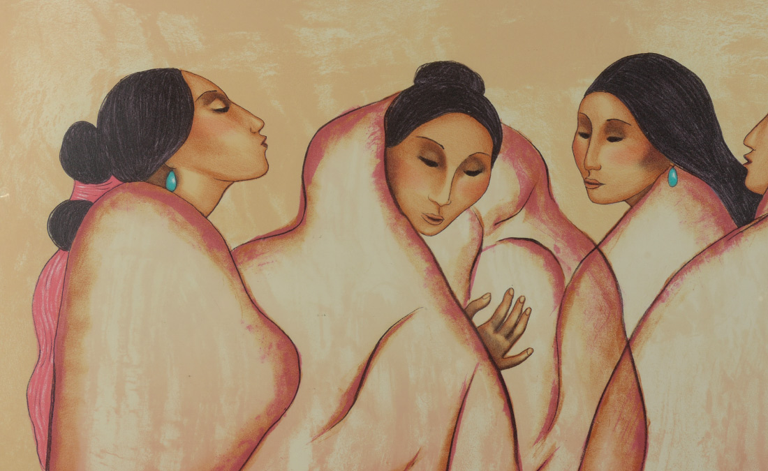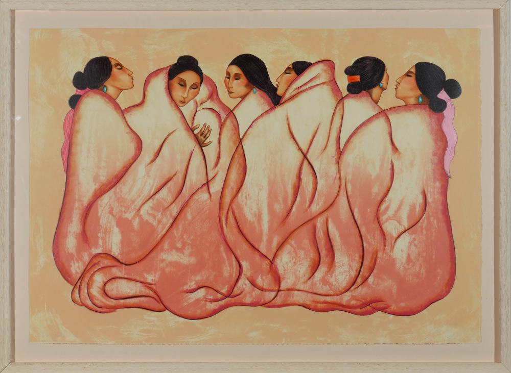 GORMAN, R. C., (American, 1932-2005): 6 Indian Ladies, Lithograph, 32'' x 44'', signed dated 1996, numbered lower right 32/100, framed 37 3/4'' x 51''.