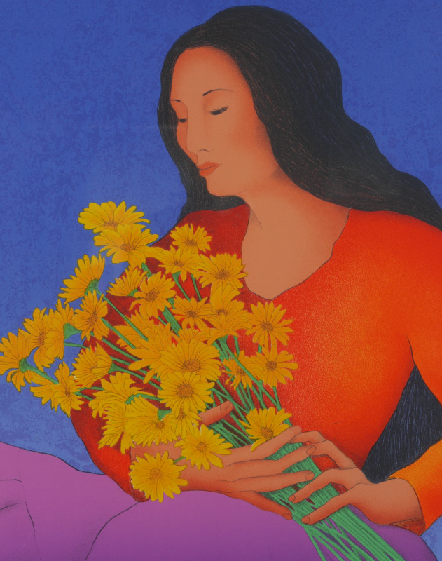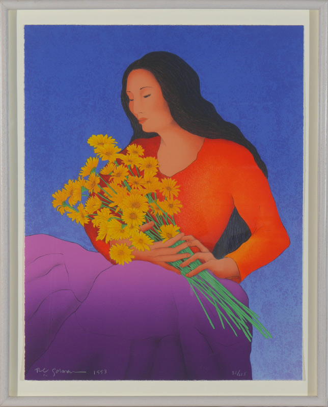 GORMAN, R. C., (American, 1932-2005): ''Mexican, Marigolds'', Indian woman with flowers, Lithograph, 25'' x 19 1/2'', signed lower left and dated 1993, 35/225, framed, 28 1/2'' x 23''.