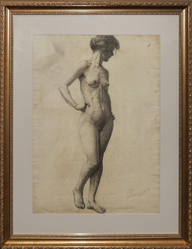 PRESSOIR, Ethel, (American, 1902-1986): Young Female Nude, Charcoal, sight size 24'' x 17 1/2'', signed, framed, 33'' x 27''.