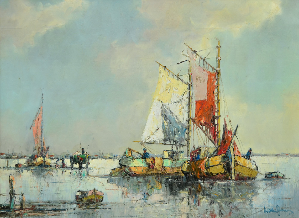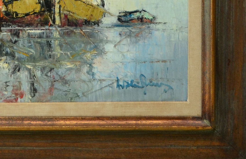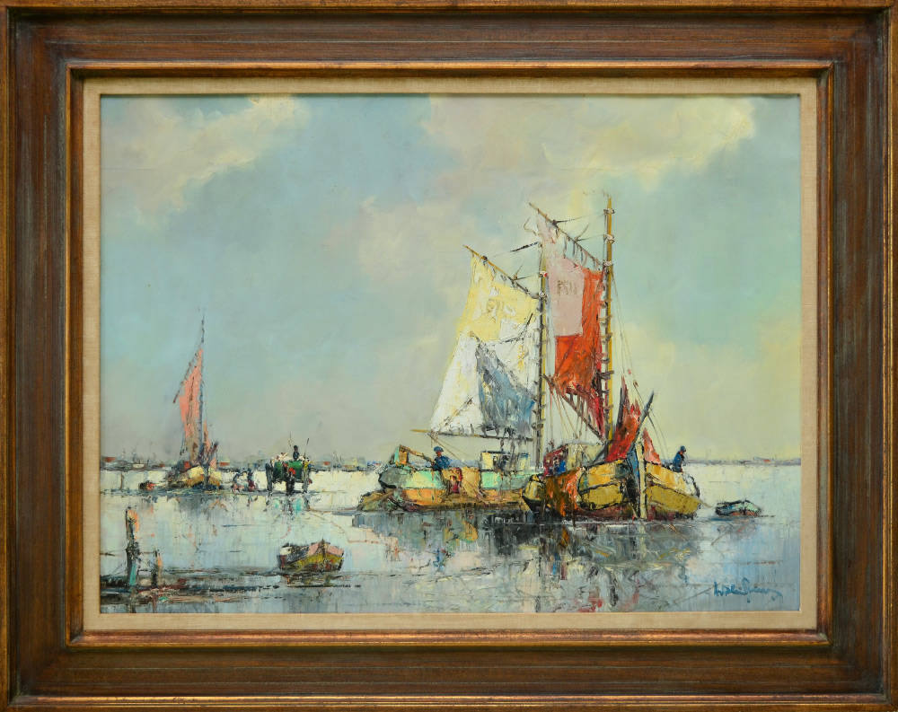 HIERER, Arthur, (Hungarian, 1900-1975): Boats at Anchor, Oil/Canvas, 24'' x 32'', signed lower right, wooden frame, 32'' x 39 1/2''.