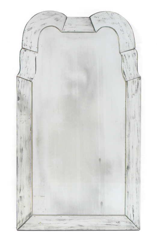 VENETIAN STYLE MIRROR: Contemporary with an antiqued appearance, double arched top, 56'' h. x 31'' x 1''.