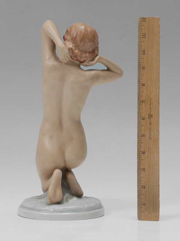 ROYAL DUX MODEL OF A NUDE FIGURE: Marked with green Royal Dux Deutchland mark, measures 12'' h. x 6 1/4''.