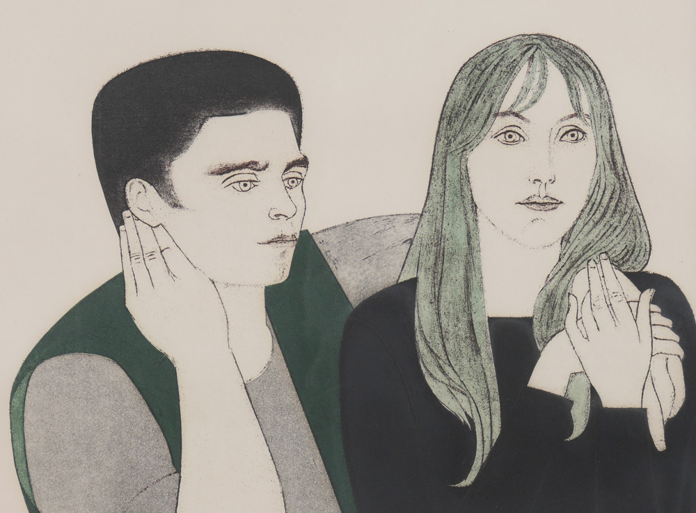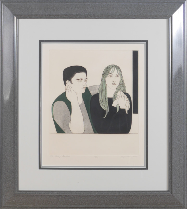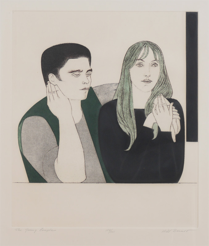 BARNETT, Will, (American 1911-2012): ''Young Couple'', Etching, sight size 20 1/2'' x 17 1/2'', pencil signed lower right, numbered lower left 154/225, titled in margin, custom framed, 36'' x 32 1/2''.