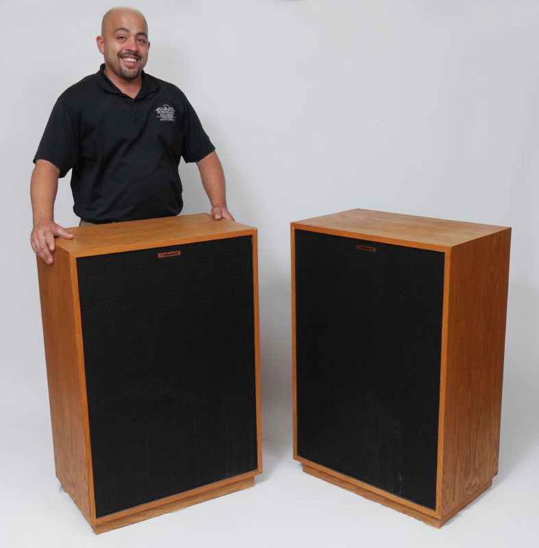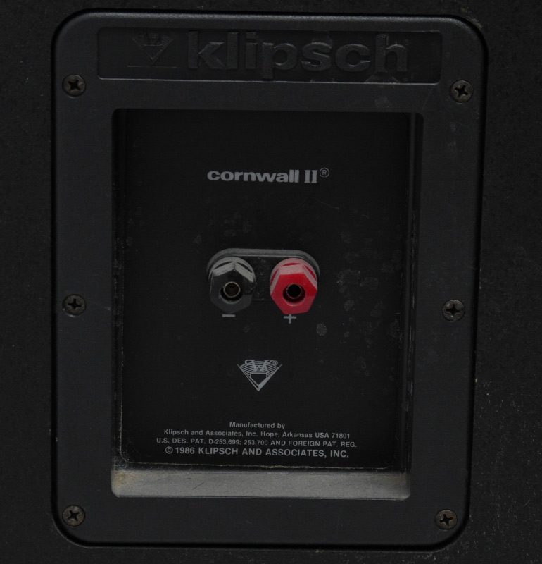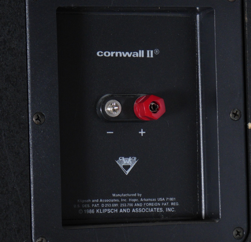 PAIR KLIPSCH CORNWALL II SPEAKERS: Wood veneer cases, appear to be in fine working condition however we cannot guarantee it to continue. Measures 38'' h. x 24 1/4'' x 15 1/2''.