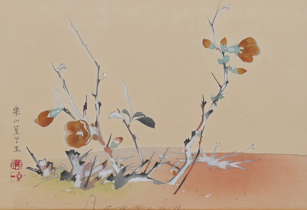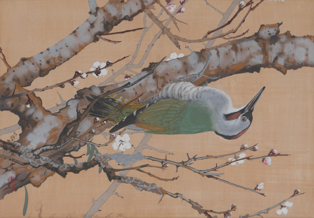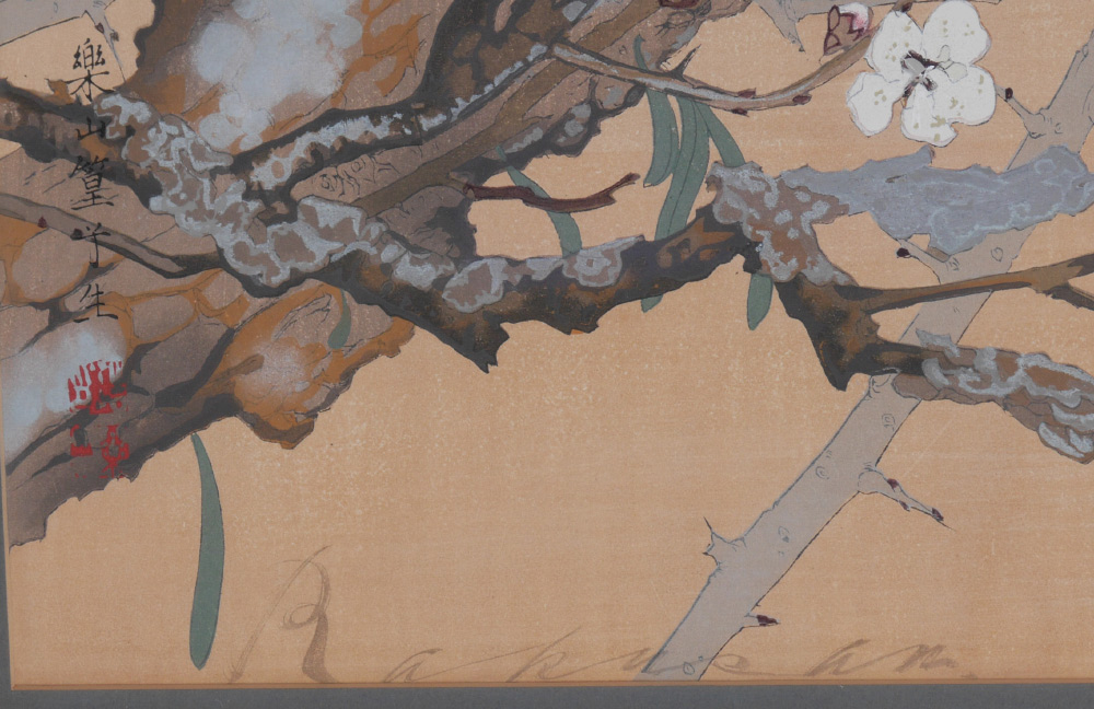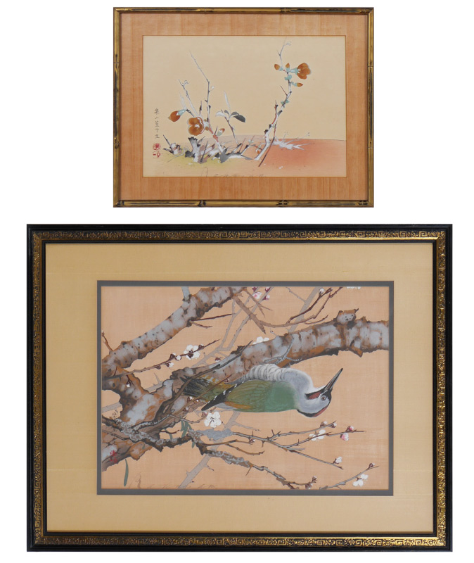 RAKUSAN (RAKUSAN) TSUCHIYA, (Japanese, 1896-1976): Pair of Woodblock Prints, 1) Woodpecker, sight size 18'' x 13'', signed, framed, 27'' x 21''; 2) Foliate Study, sight size , signed, framed, 12 1/2'' x 16 1/2''.