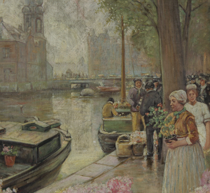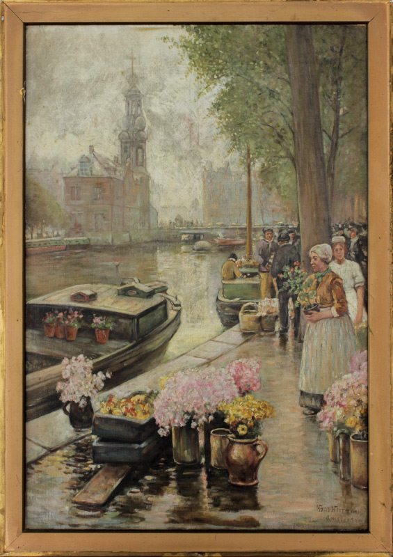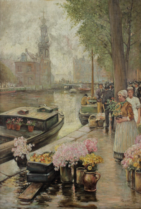 HERRMANN, Hans, (German, 1858-1942): Amsterdam Flower Market, Oil/Canvas, 20'' x 14'', signed and titled lower right, encased by original liner, 21 1/2'' x 15 1/2''.