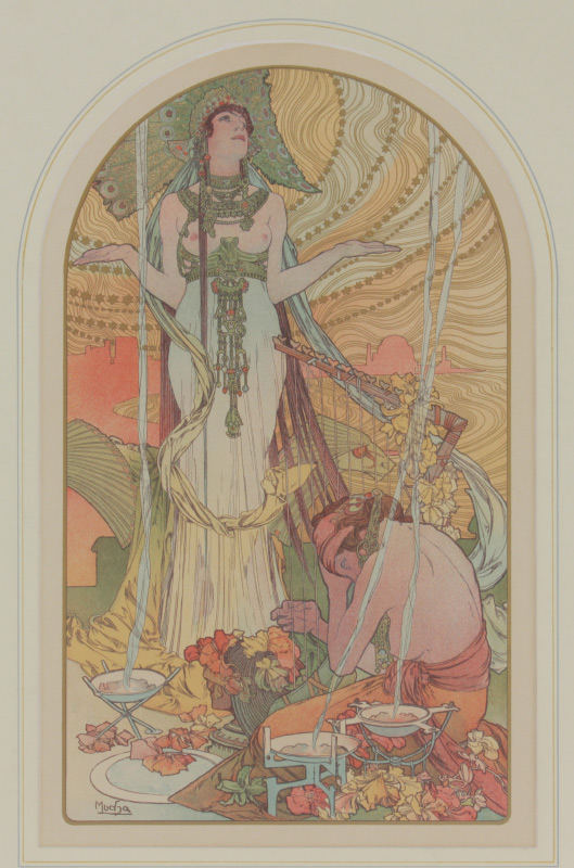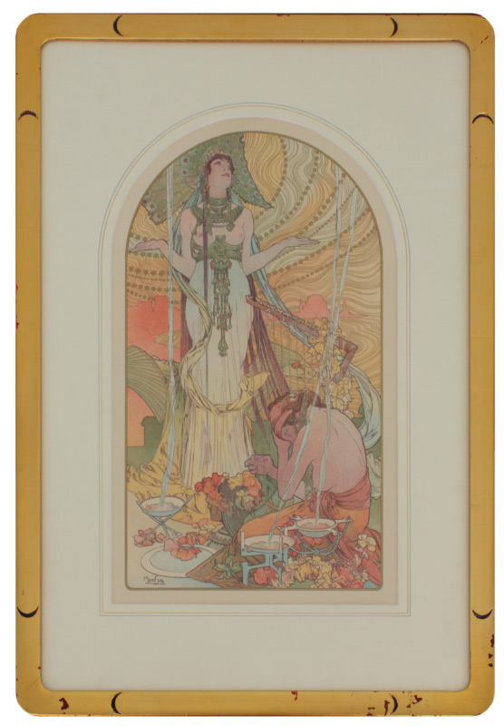 MUCHA, Alphonse, (Czech Republic, 1860-1939): ''Salambo'', Poster Lithograph, sight size 15 1/2'' x 9 1/4'', signed in the plate lower left, original carved and gilded frame 22 1/2'' x 15 3/4''.