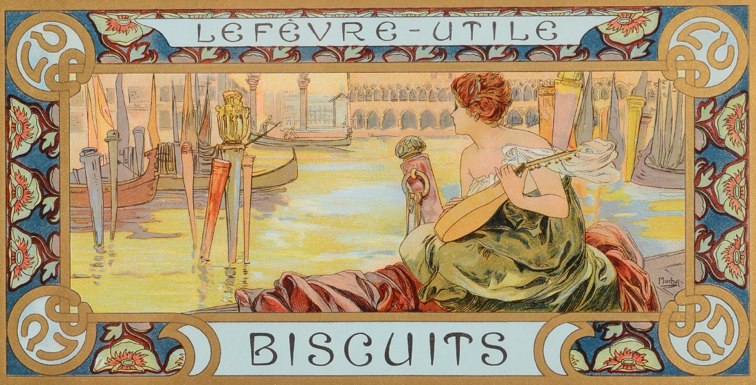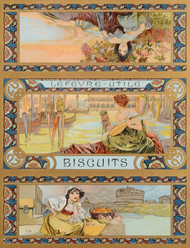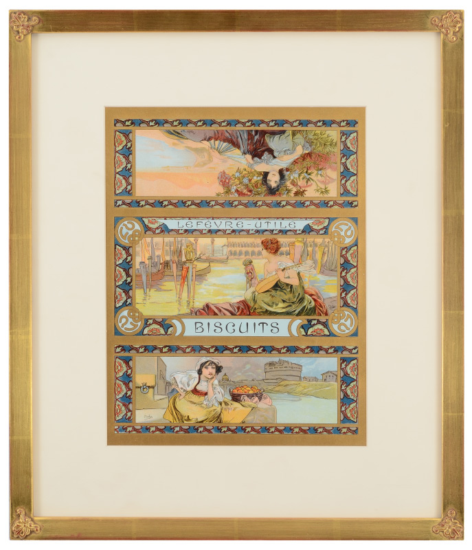 MUCHA, Alphonse,(CZECH, 1860-1939): ''Lefevre-Utile/Bisquits, Color Lithograph for Bisquit Tin, sight size 11 7/8'' x 8 1/4'', framed, 17'' x 14 1/2''.