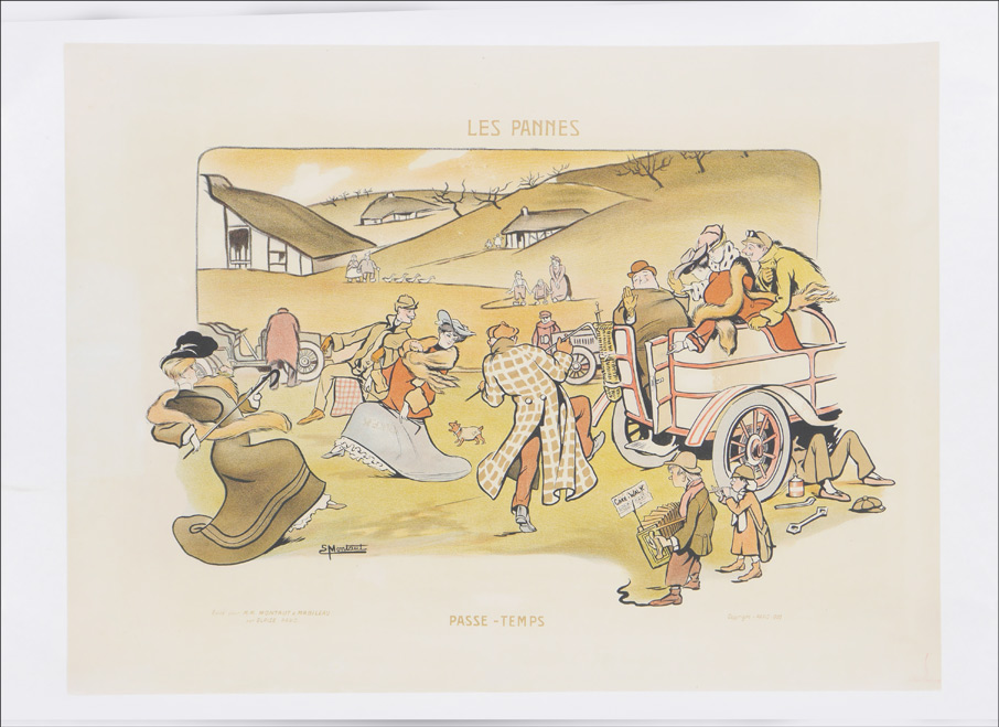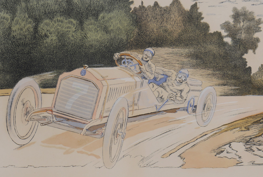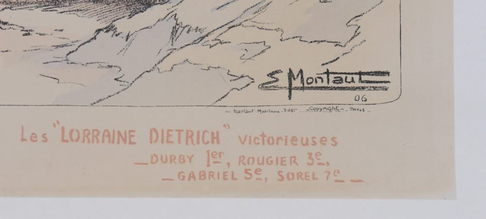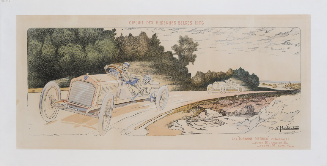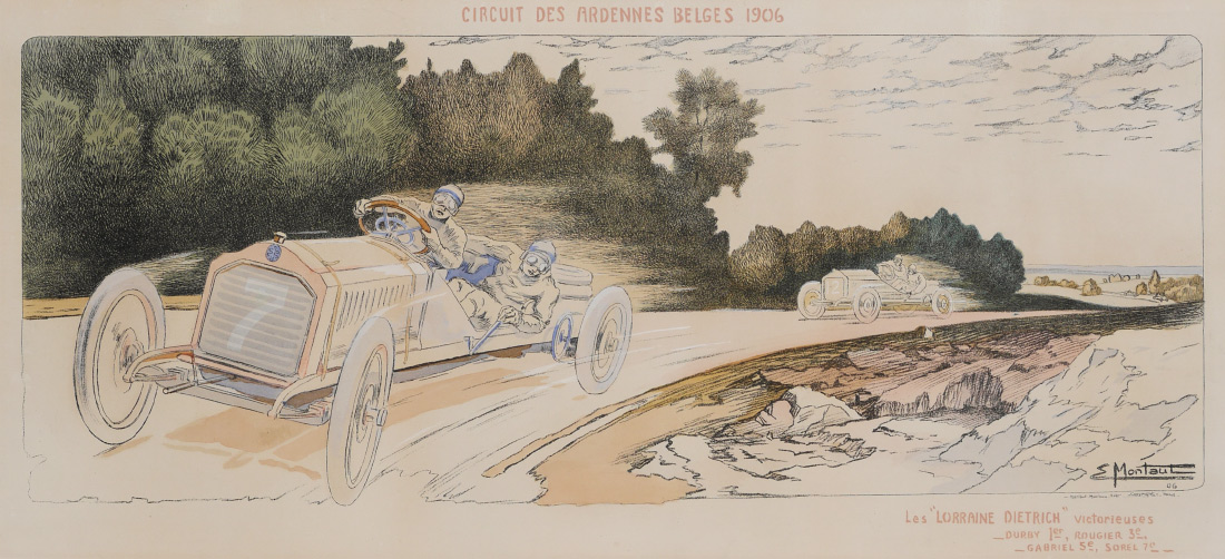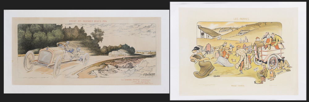 MONTAUT, Ernest, (French, 1879-1936): Lithographs are 1) Circuit des Ardennes Belges, 1906, 16'' x 34 1/2'', 2) Les Pannes Passe-Temps, 18 3/4'' x 24 3/4''.