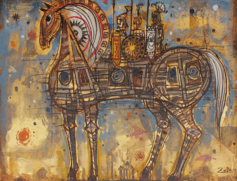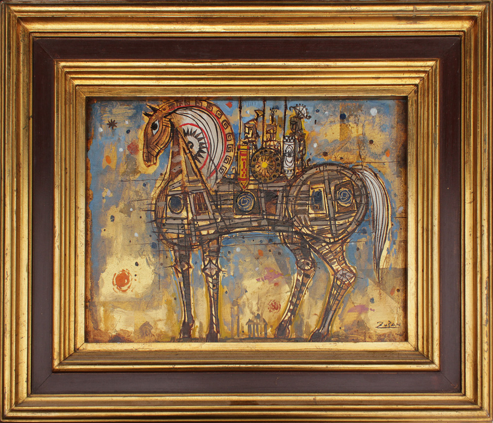 ZUPAN, Bruno, (Yugoslavian, 1939- ): Abstract/fantastic horse, Oil/Canvas, 9 1/2'' x 13'', signed lower right, framed, 15'' x 18 1/2''.