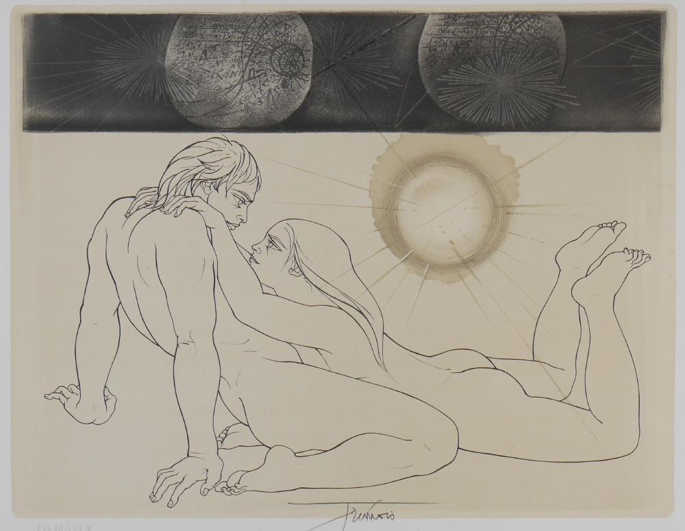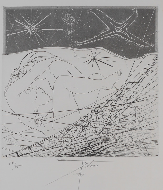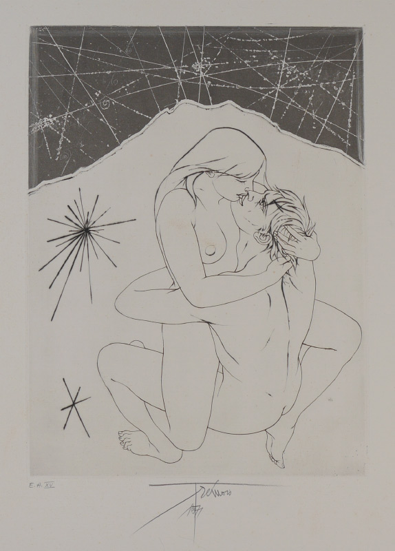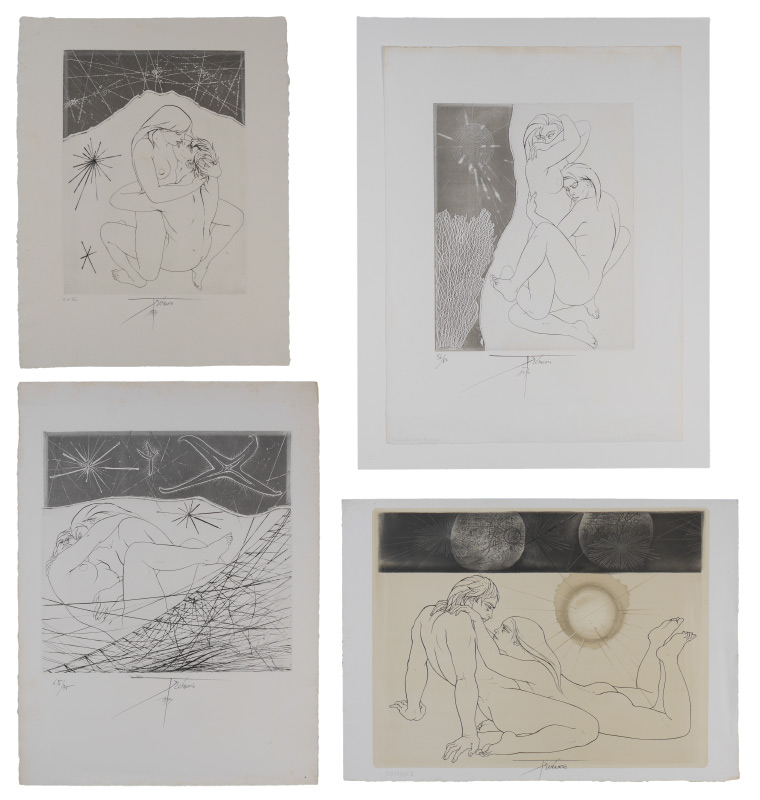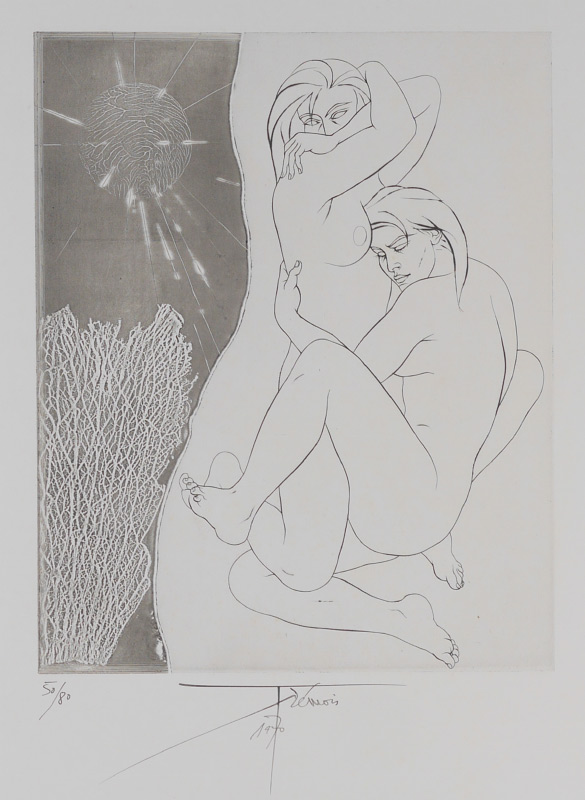 TREMOIS, Pierre Yves, (French, 1921-): 5 etchings total to include 1) Untitled, EA XV, signed and numbered in pencil, image size 18 1/2'' x 13 3/4'', paper size 26'' x 20 1/4''. 2) ''Jeune Filles a la Madrepore'', 1970, 50/80, image size 19 1/2'' x 15'', paper size 29 3/4'' x 22''. 3) ''Couple of Kerhiho, 37/39, image size 19 1/2'' x 25'', paper size 22'' x 29 3/4''. 4) ''Jeune Filles au Filet'', 65/75, signed and numbered in pencil, image size 18'' x 18 1/2'', paper size 30'' x 22 1/4''. 5) ''Zeus'', 55/70, signed and numbered in pencil, image size 14 3/4'' x 11 1/2'', paper size 25 3/4'' x 19 1/2''.