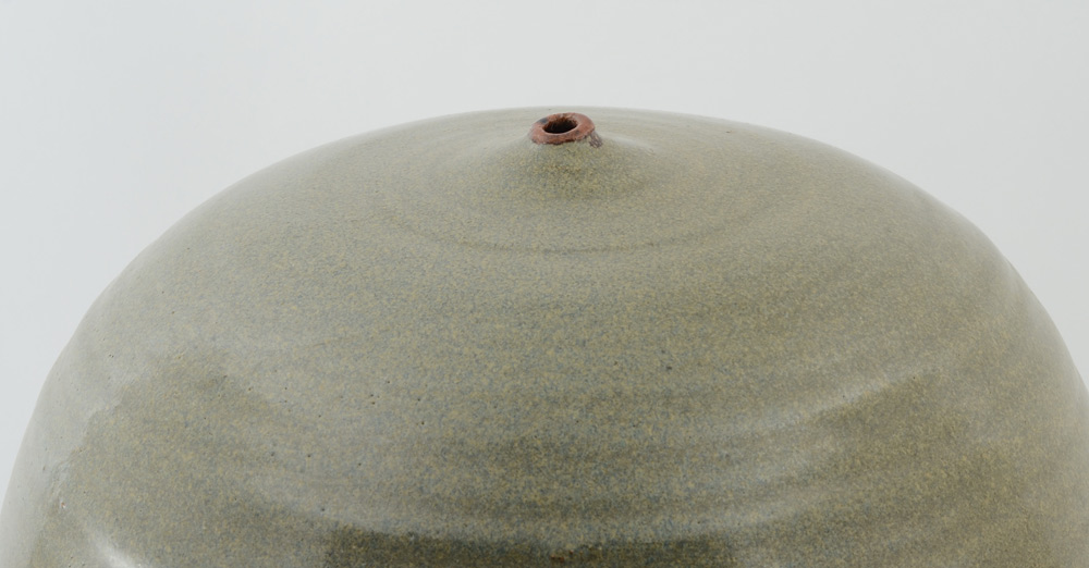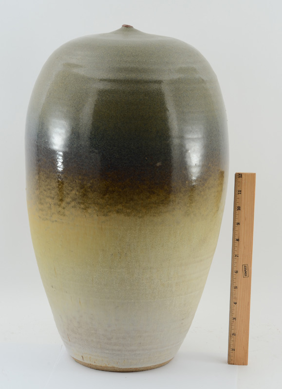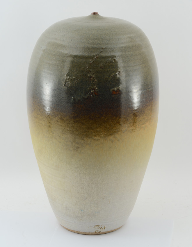MICK, Michael, (American, 20th Century): Large vessel with graduating glaze, tiny opening at top, signed Mick, '80 at base. Overall 20 3/4'' h. x 12''.