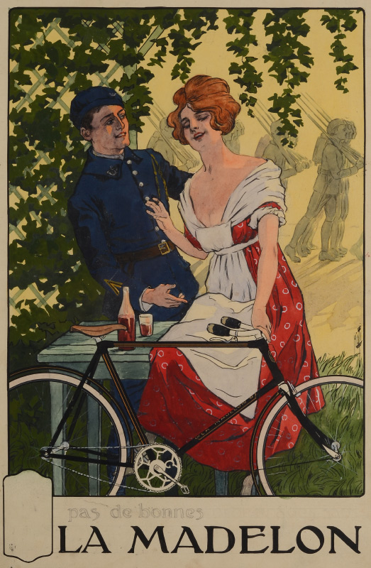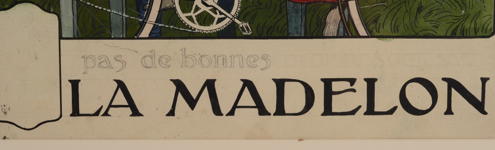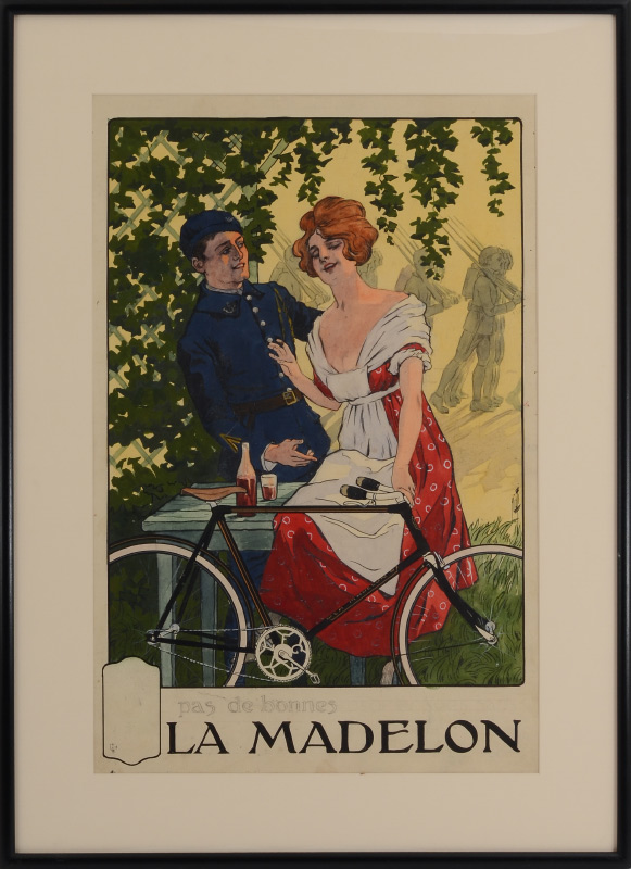 ORIGINAL MISTI ILLUSTRATION FOR LA MADELON BICYCLE: Watercolor, sight size 20 1/2'' x 13 1/2'', contemporary frame, 26 1/2'' x 19 1/2'', (poster maquette).