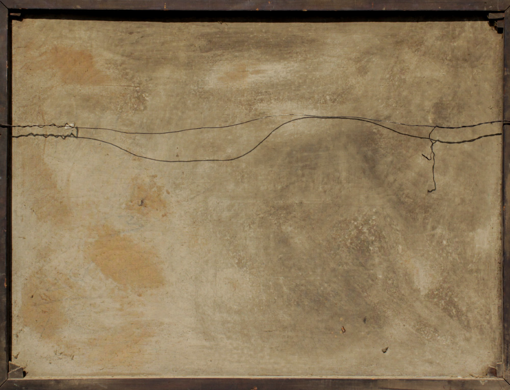 CONDITION: Heavy scattered craquelure throughout, needs cleaning, several scattered flecks of paint loss, sold as is.